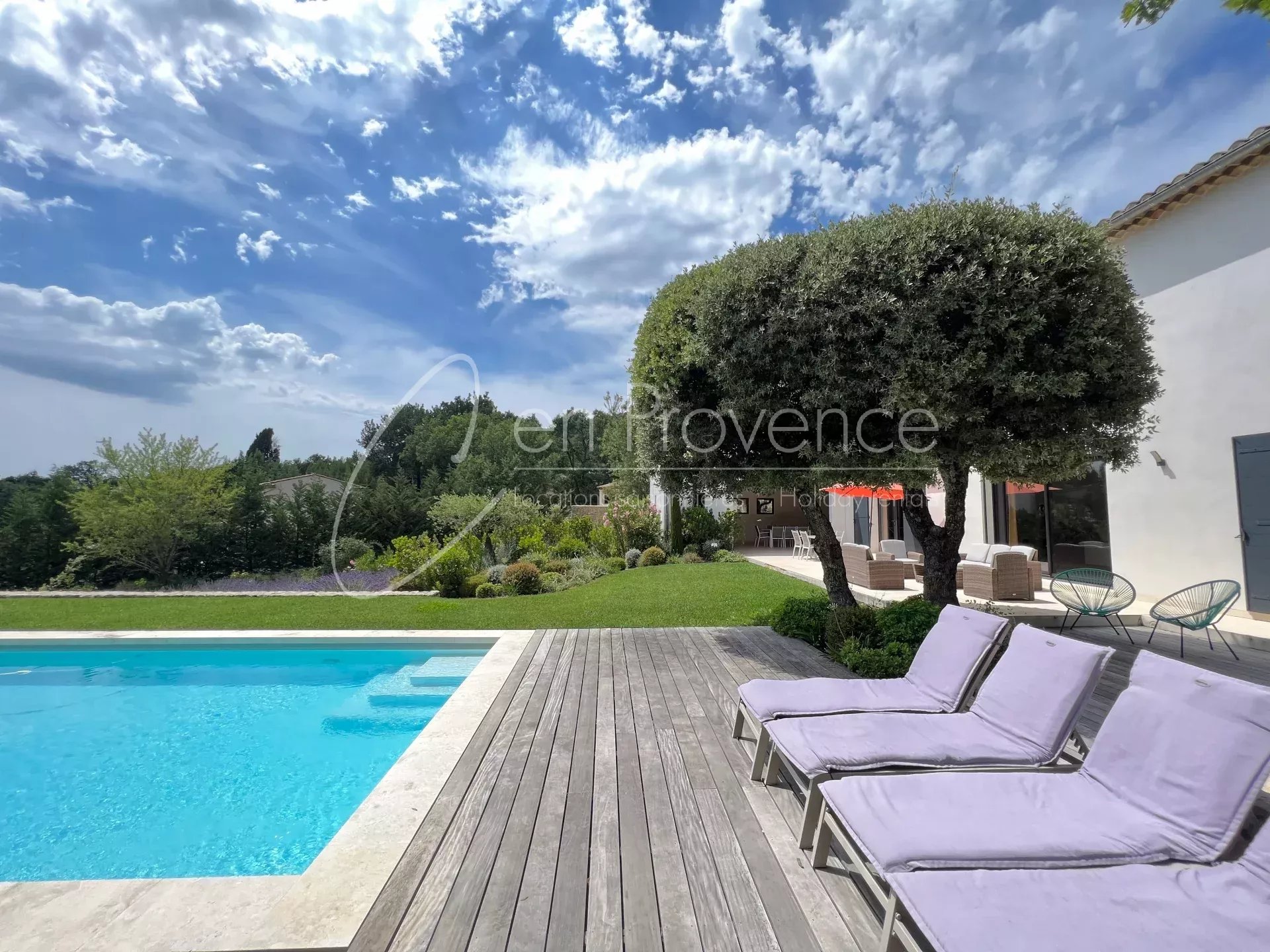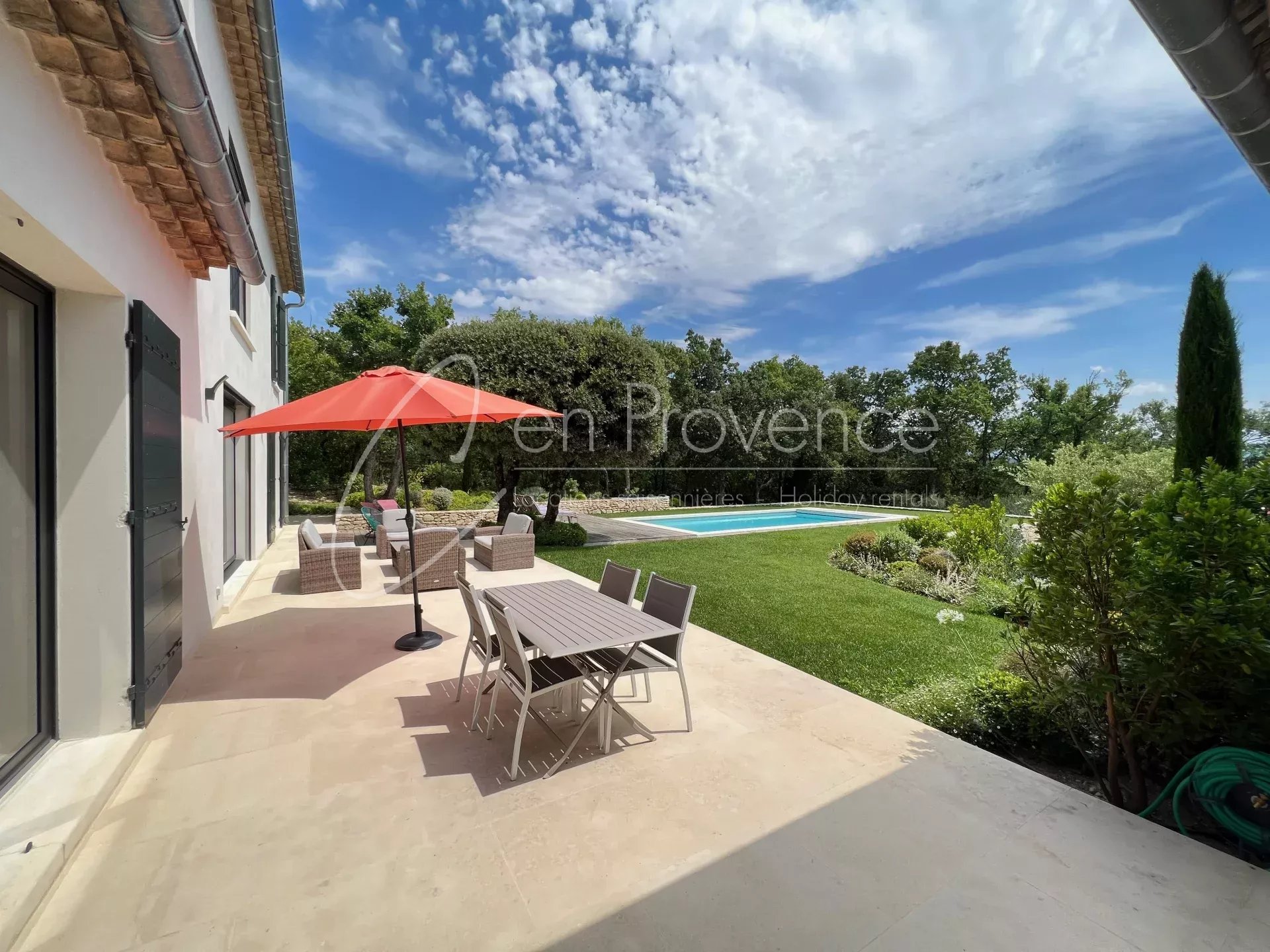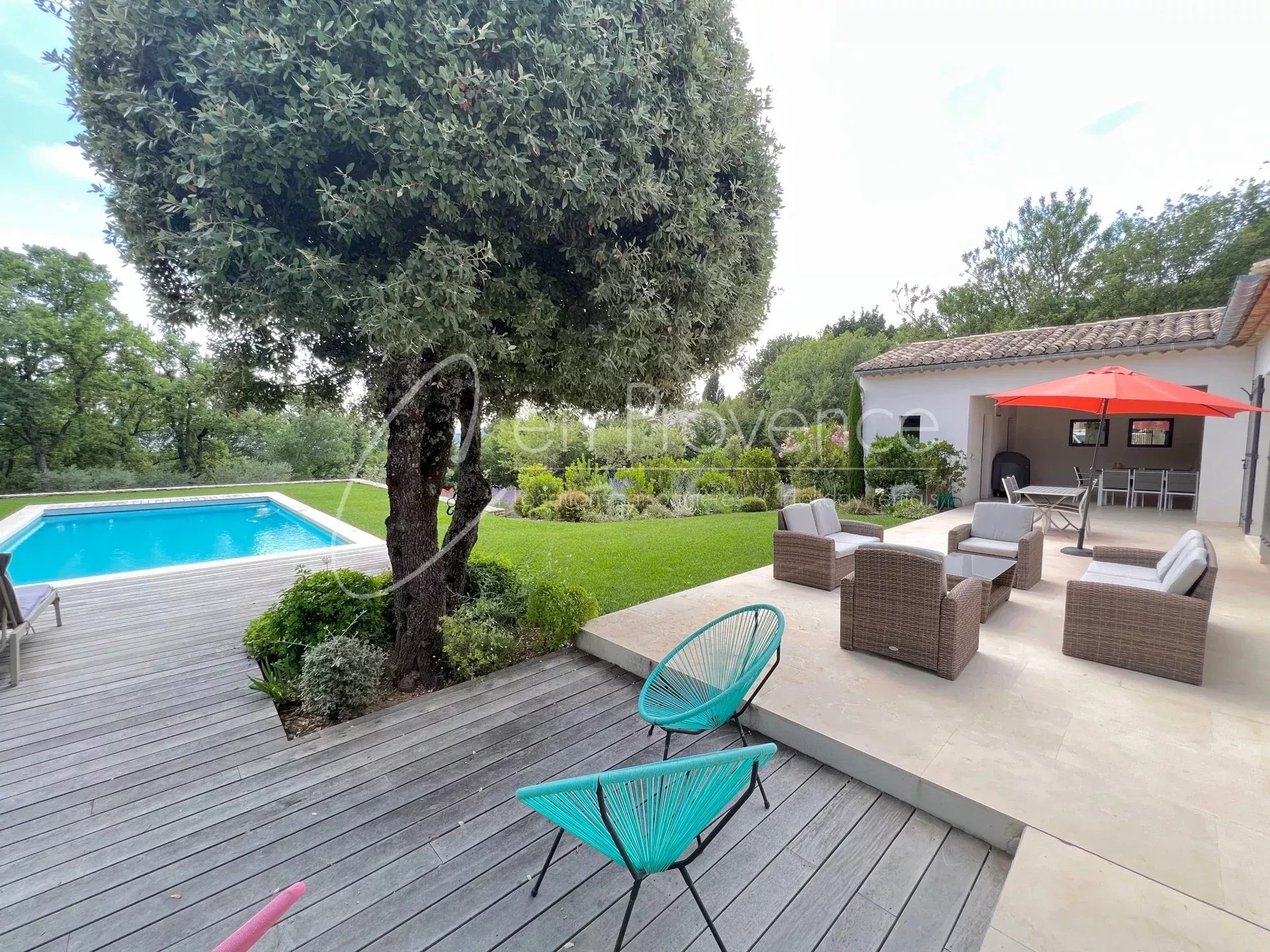 Villa des chênes is a charming newly built house with beautiful view, set 10 minutes by walk from the center of a village with all shops.This very comfortable villa has been built to enjoy Provence. Large living space opening onto the terrace. The kitchen and dining room are comfortable and easy to relax in, while bedrooms and bathrooms are cozy and spacious.