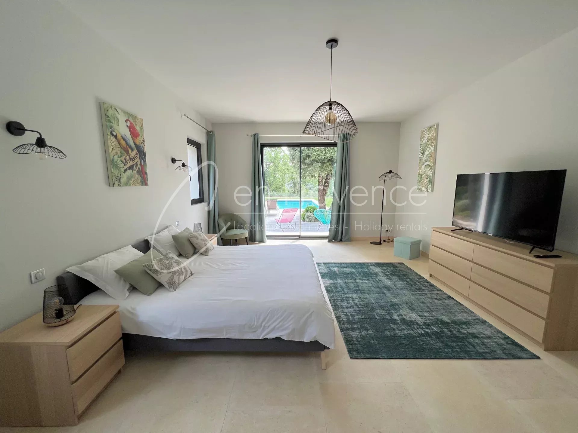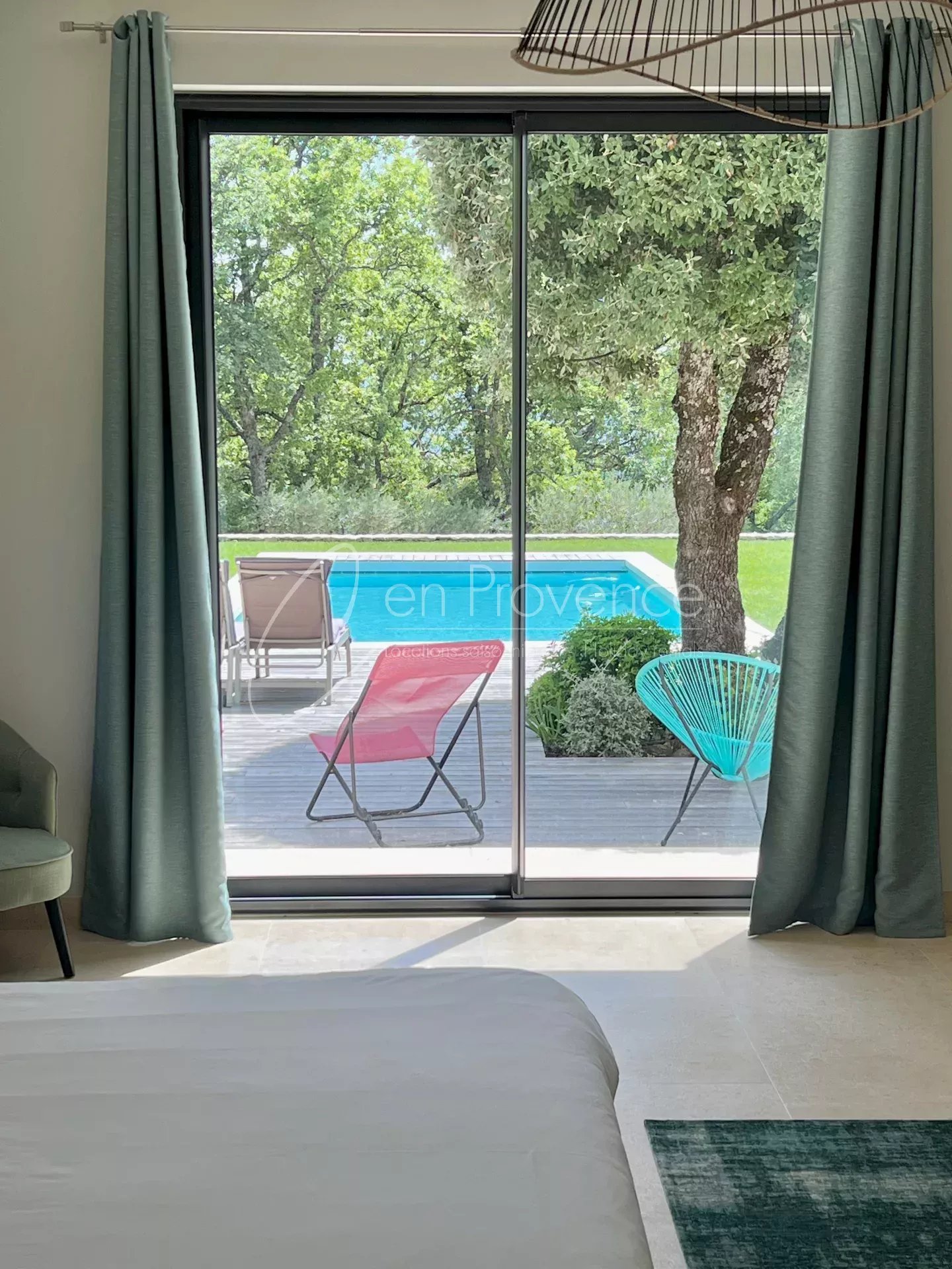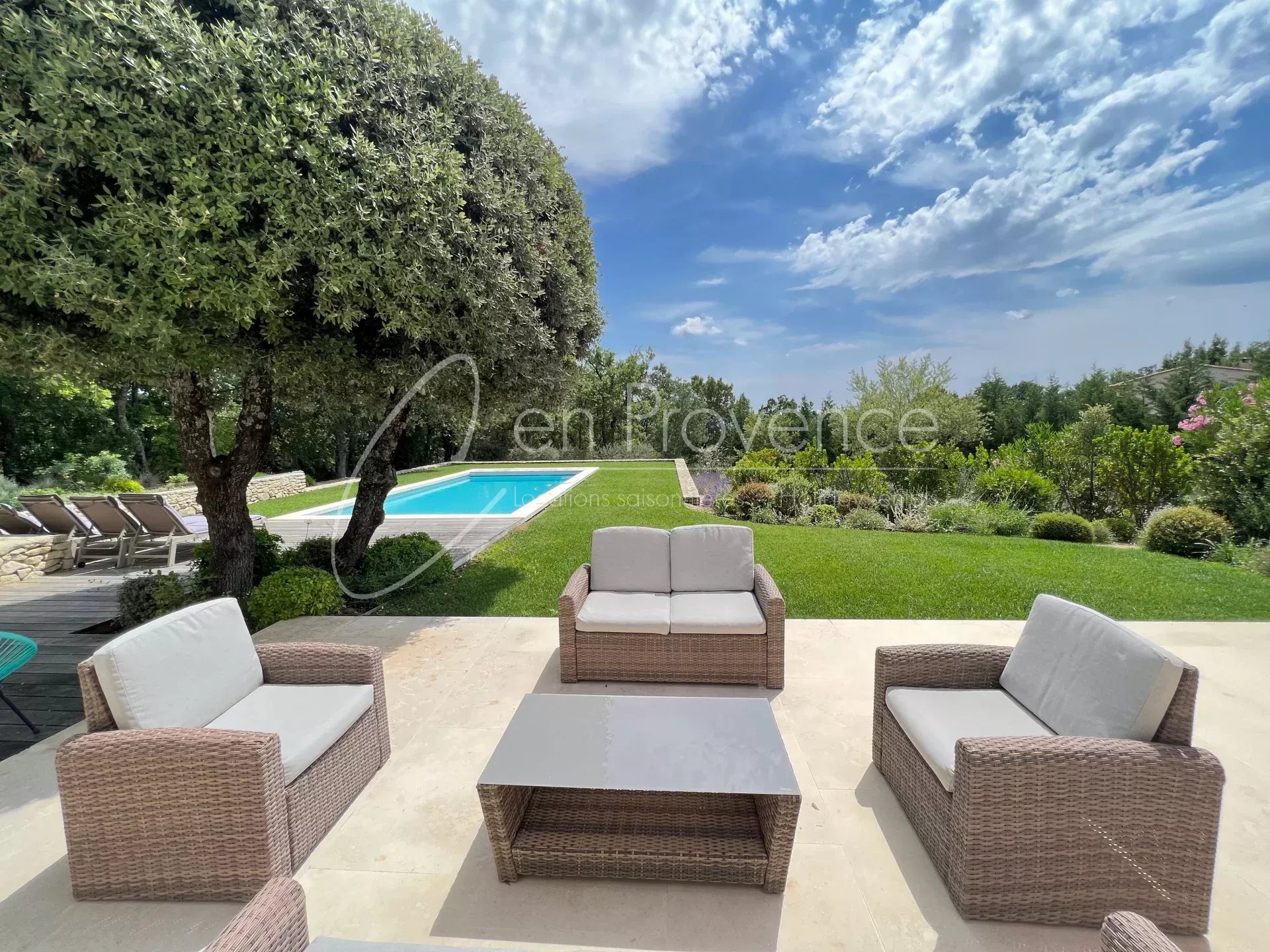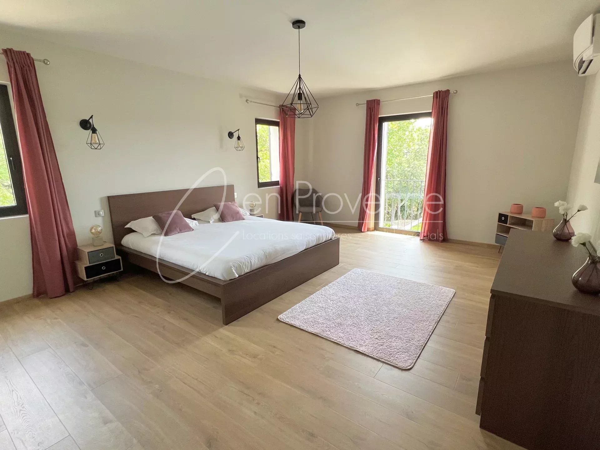 Outside, the private garden is very well maintained and offers a 9m x 4,5m heated swimming pool with a beautiful view on the Luberon valley. Enjoy the calm and sun in this very comfortable air conditioned villa in Saint Saturnin les Apt, enjoy the beautiful cafés, restaurants and the market located within walking distance of the villa.