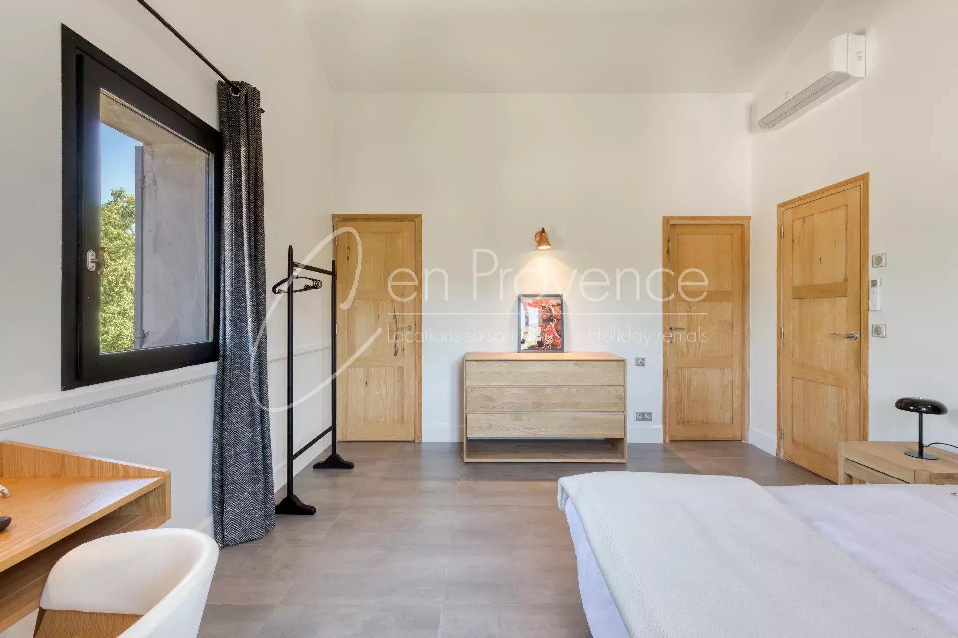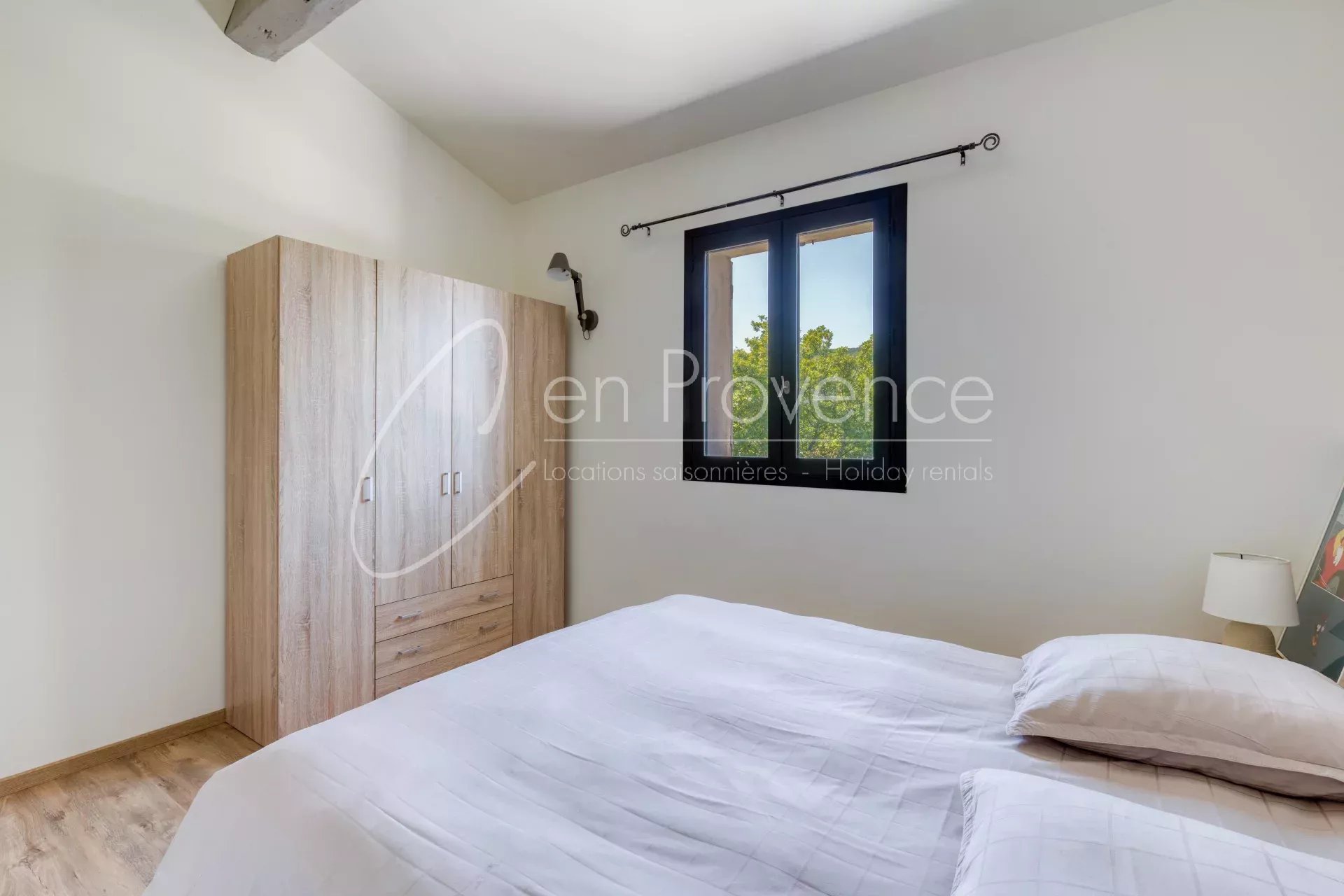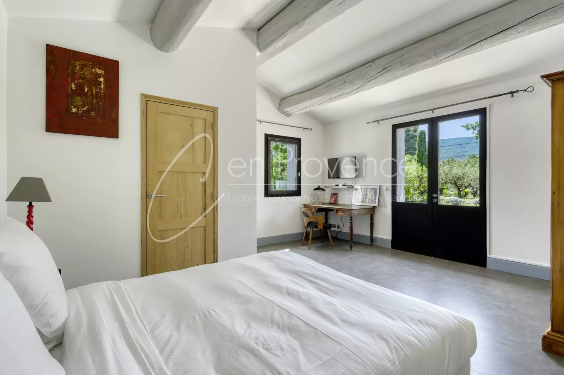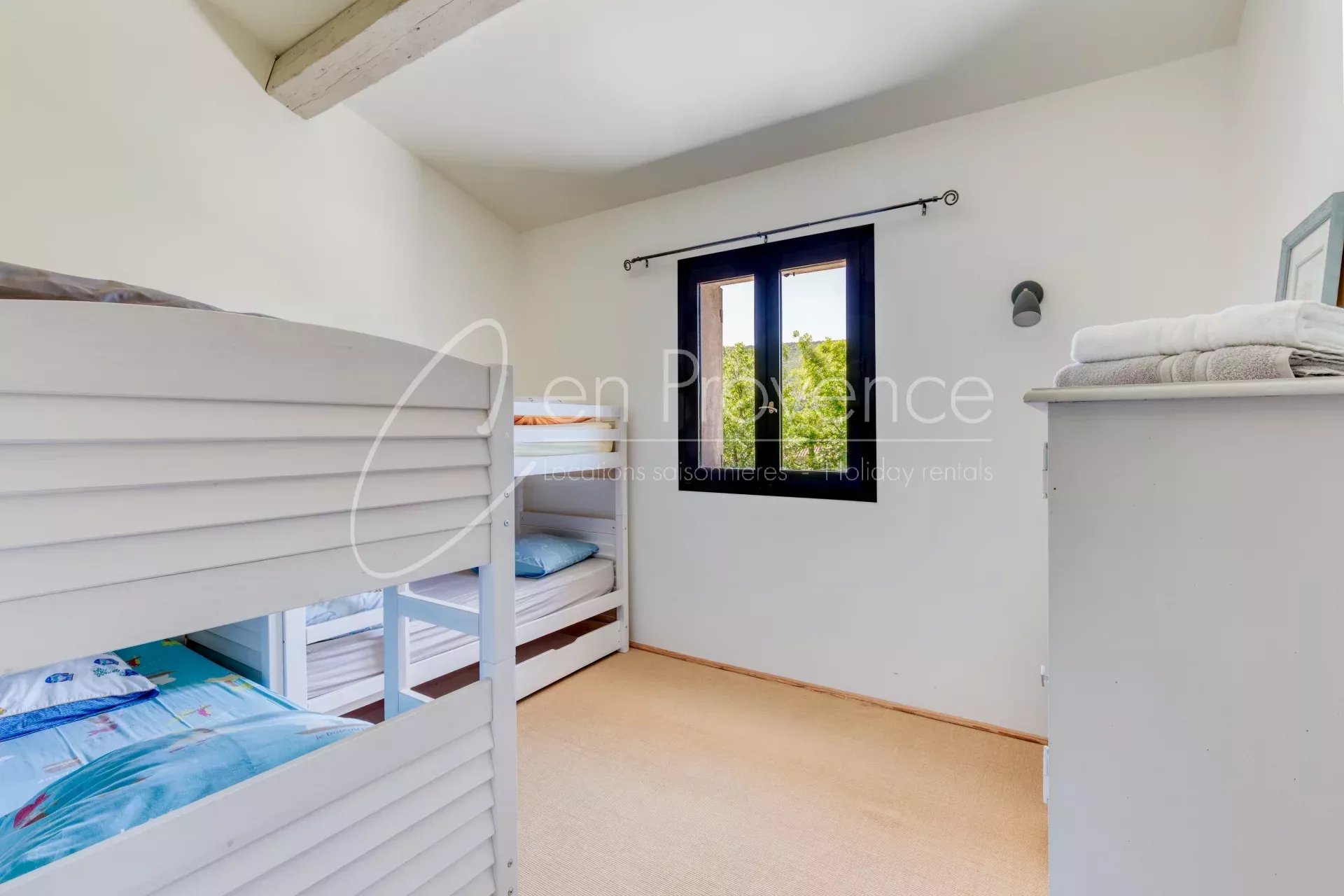 À proximité de nombreux chemins de randonné, cette belle location avec piscine est idéale pour des vacances dans le Luberon dans un environnement calme, avec de beaux espaces farniente, proposant 5 chambres climatisées et 4 salles d’eau pour maximum 12 personnes.