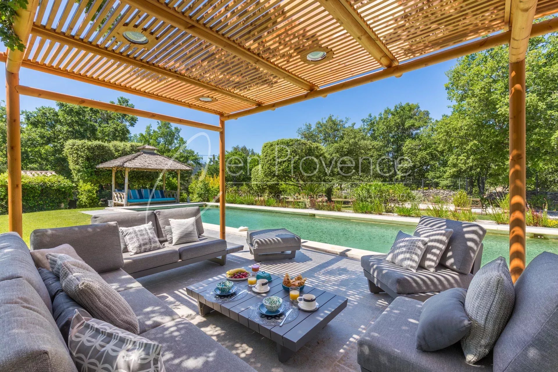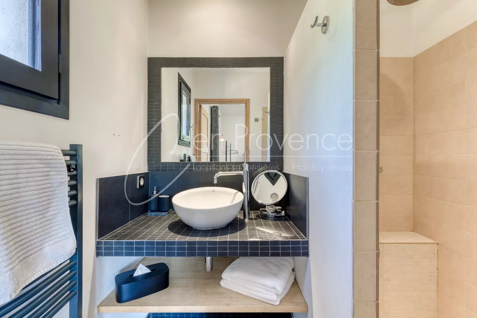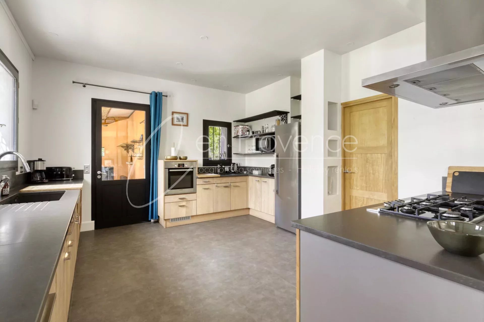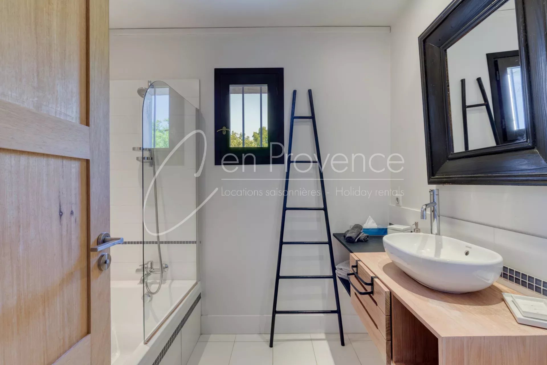 À proximité de nombreux chemins de randonné, cette belle location avec piscine est idéale pour des vacances dans le Luberon dans un environnement calme, avec de beaux espaces farniente, proposant 5 chambres climatisées et 4 salles d’eau pour maximum 12 personnes.