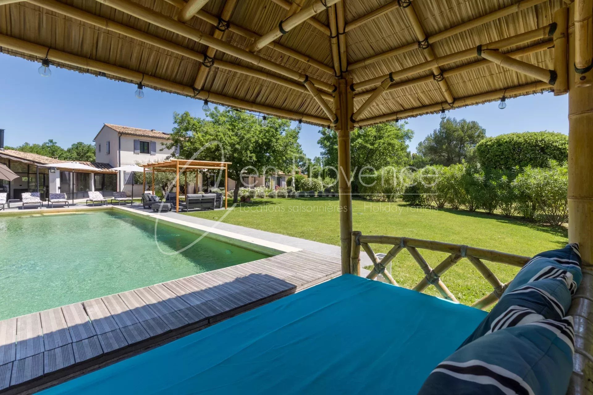 Pour la sieste, vous pourrez profiter du lit de repos sous le gazebo. La villa offre également un terrain de pétanque et une table de ping-pong.