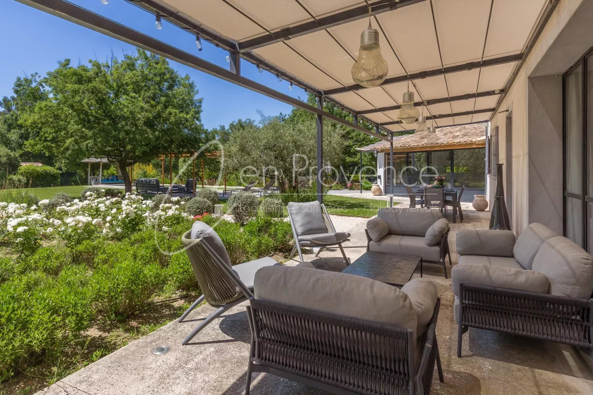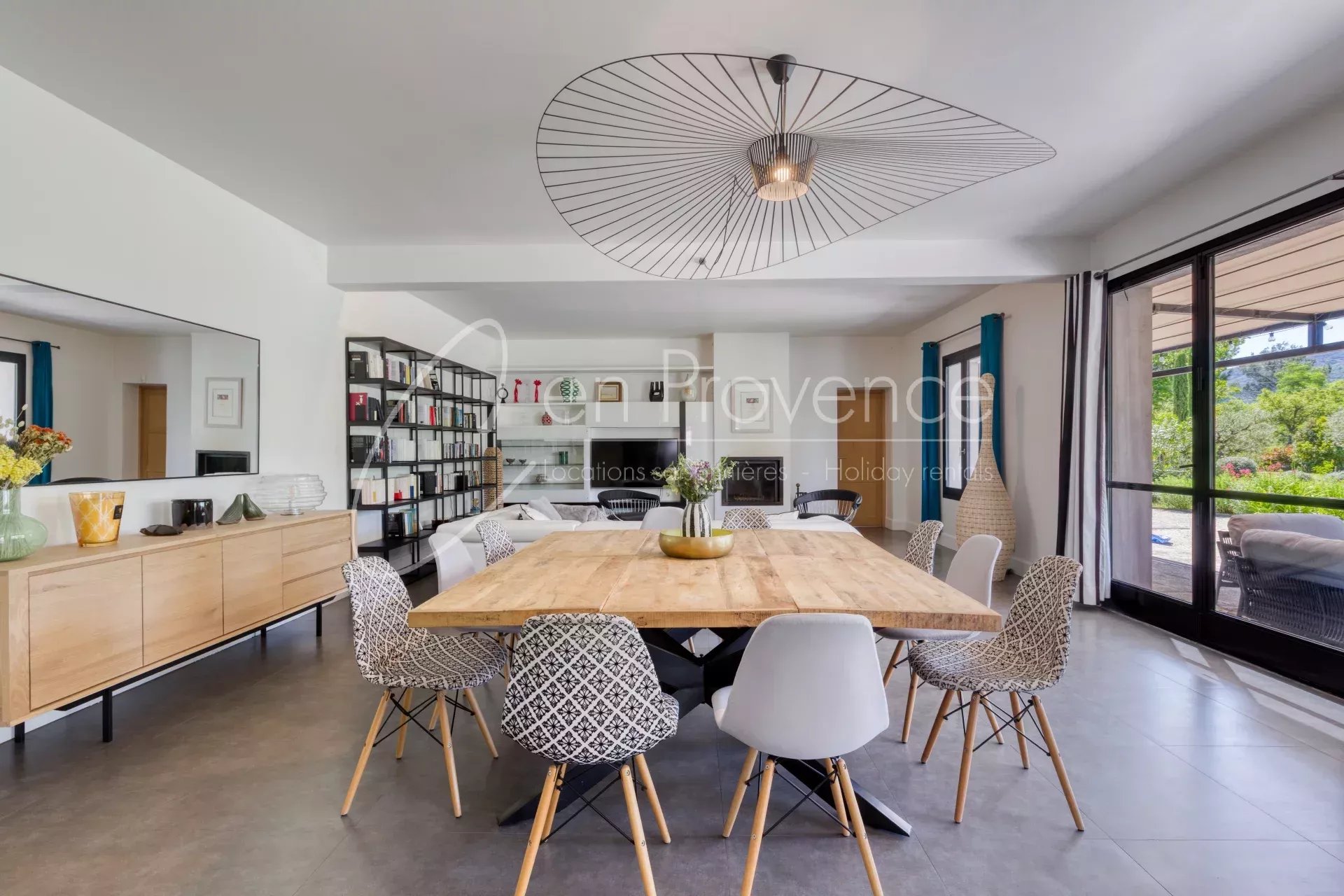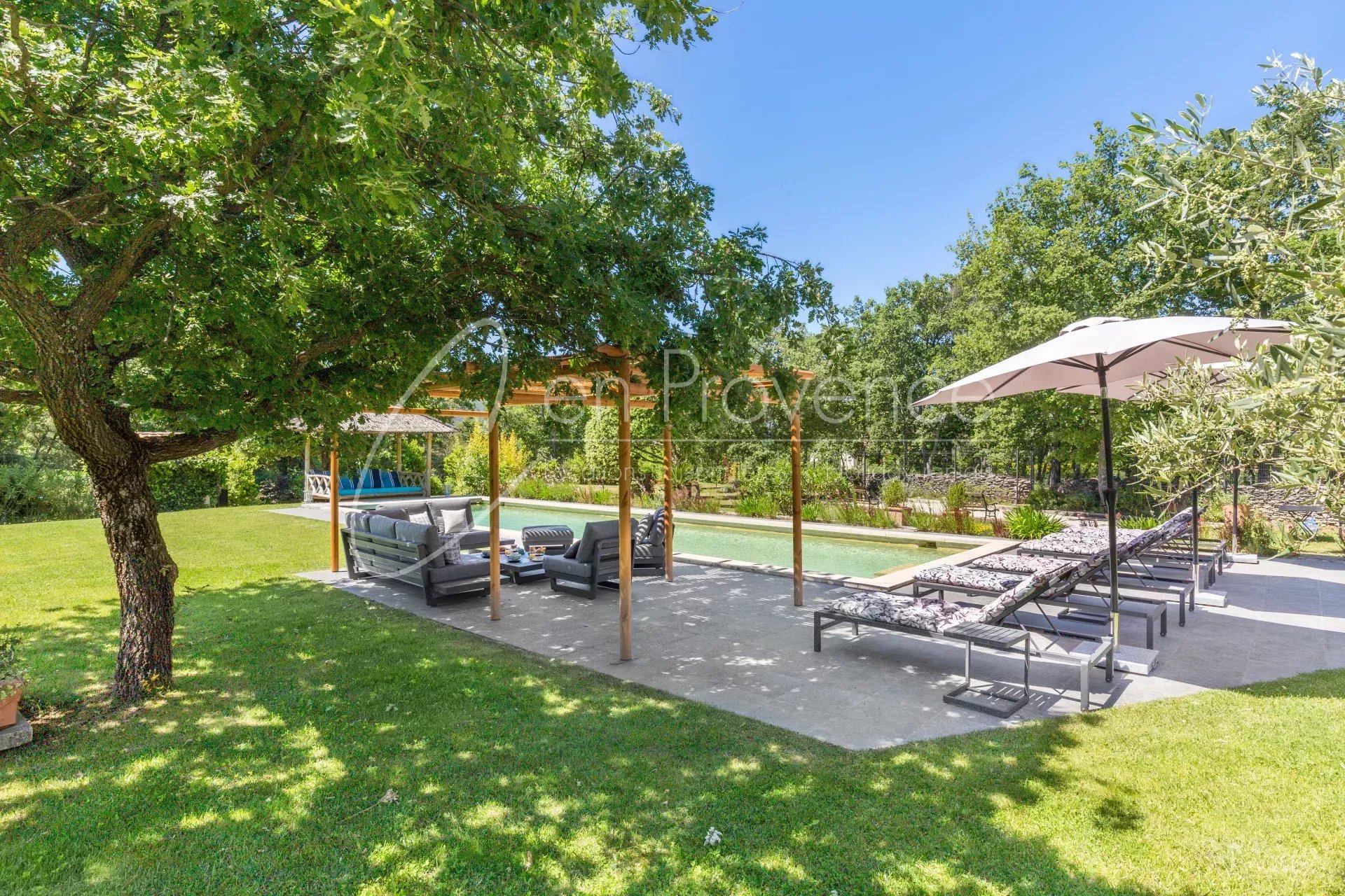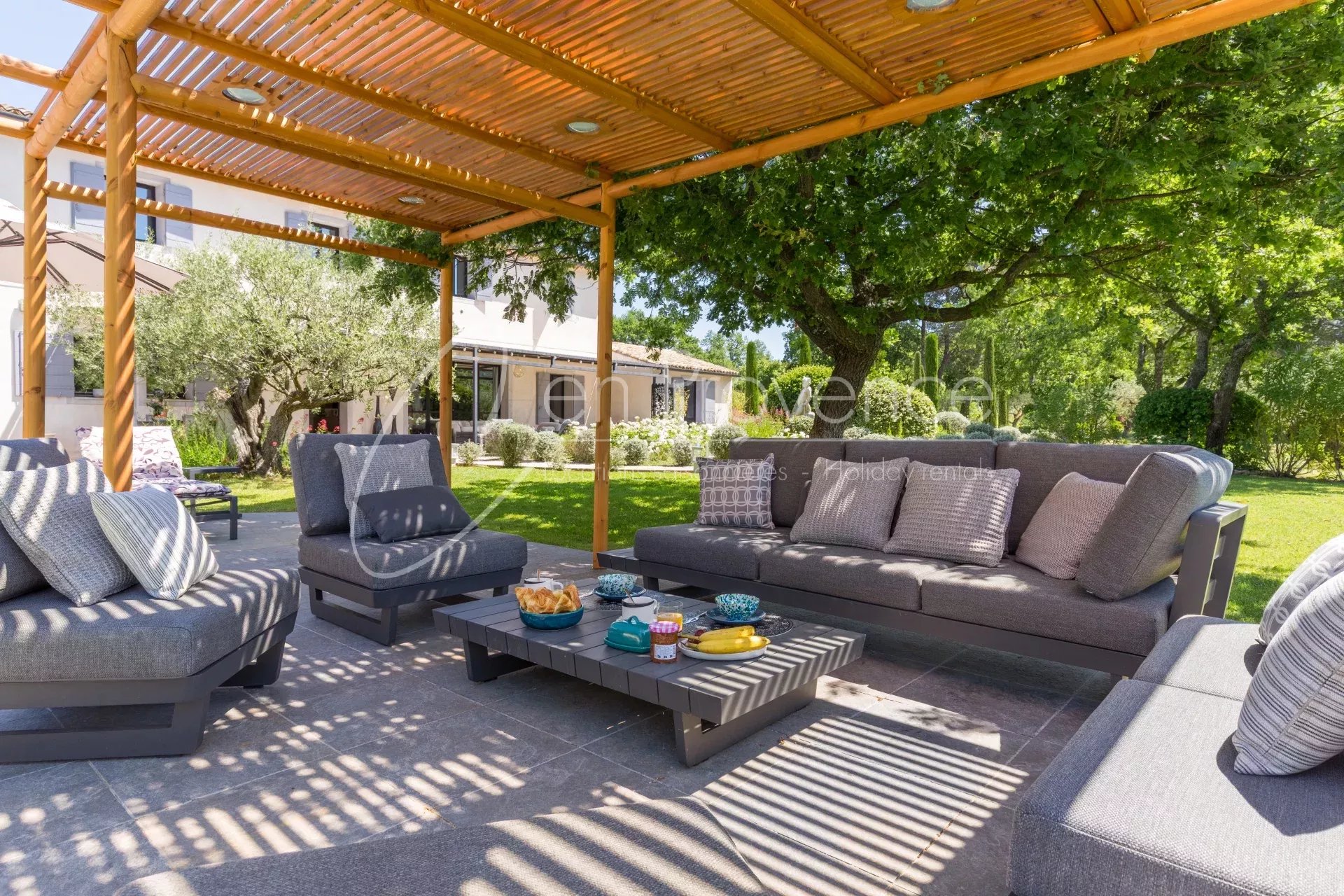 Venez passer vos vacances en Provence dans cette belle villa avec piscine chauffée à 3 km du village de Lacoste. Dans un environnement privilégié au calme, la propriété dispose d’un jardin paysager clos de 4 300 m2 offrant une vue imprenable sur la montagne du Luberon.